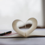 Pen and pages of notebook forming heart-shape